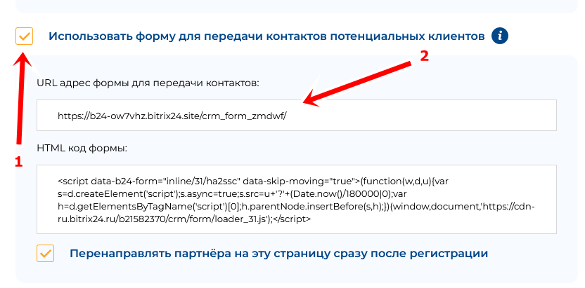 Далее добавьте URL адрес формы на 3-ем шаге настроек условий сотрудничества. После этого в личных кабинетах партнёров появится пункт меню - «Зарегистрировать клиента». Если вы добавите HTML-код формы - она будет доступна внутри личного кабинета.