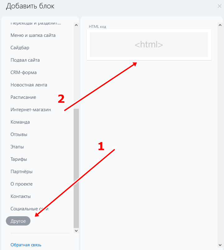 11 Далее перейдите в режим редактирования блока и вставьте код нашего трекера. Найти его вы можете на странице - https://sdelka.biz/shop/